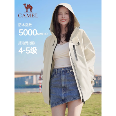 NASA联名渐变色冲锋衣女春秋季新款防水连帽夹克情侣美式宽松外套